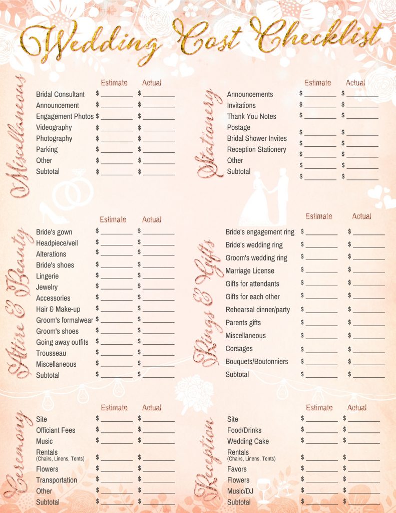 Free Printable – Wedding Cost Checklist | Wedding | Wedding Planning – Free Printable Wedding Checklist