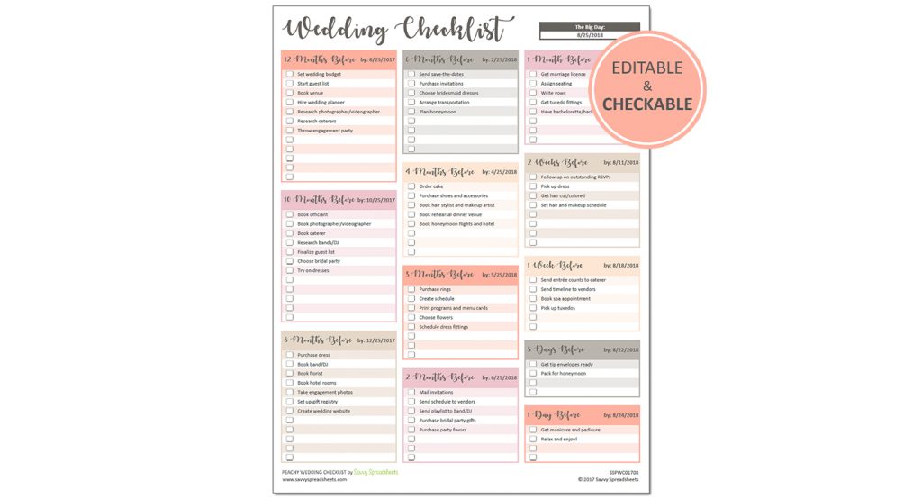 Printable Wedding Checklist - Excel Template - Savvy Spreadsheets - Free Printable Wedding Checklist
