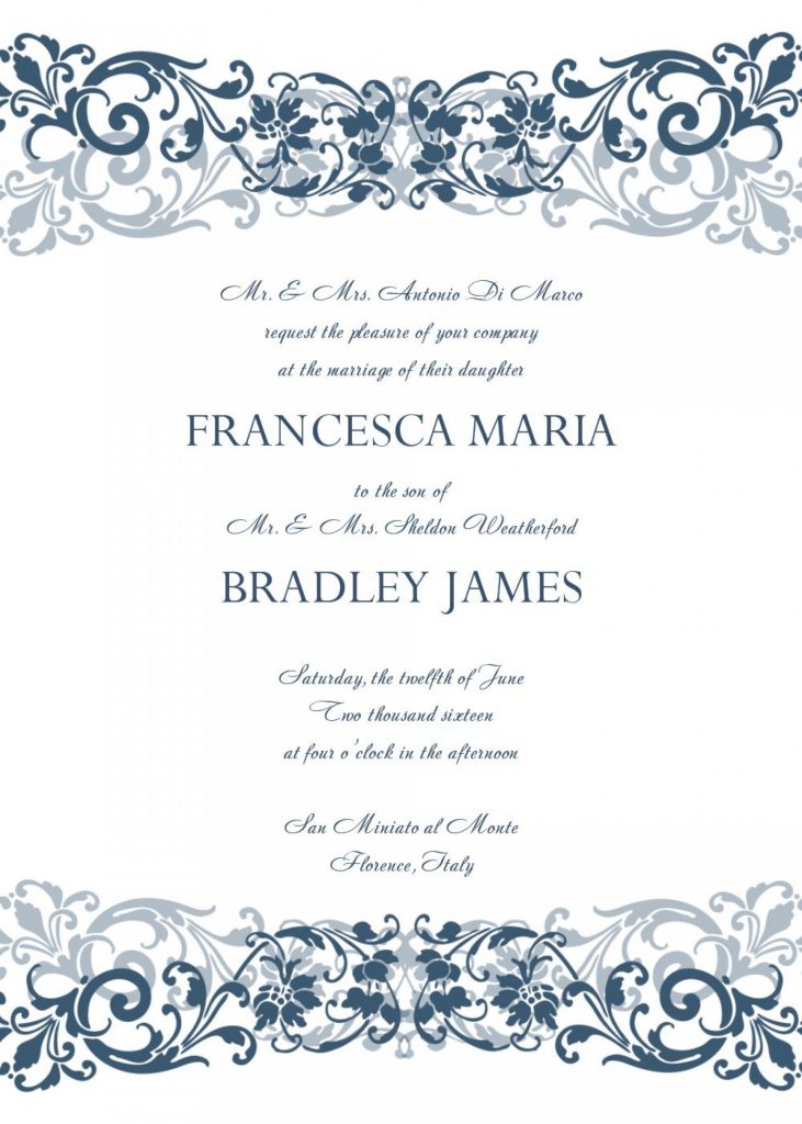 Royal Blue And Silver Wedding Invitation Templates For Microsoft – Free Printable Wedding Invitation Templates For Microsoft Word