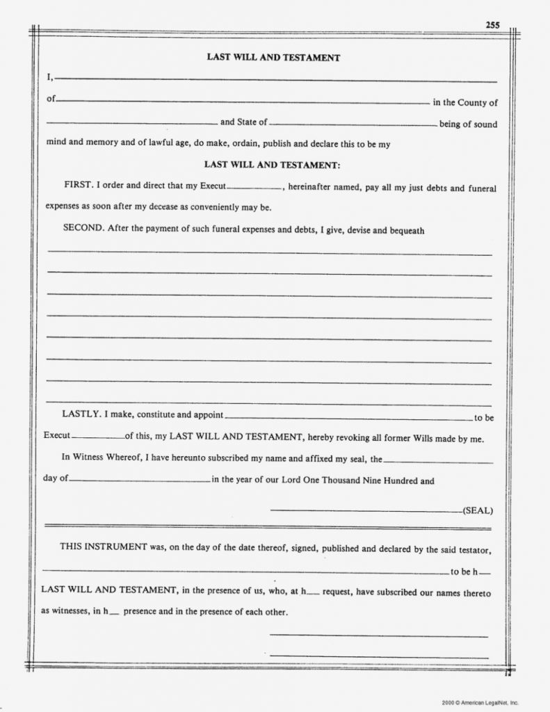 Great Free Printable Blank Last Will And Testament Forms Images With – Free Printable Will Forms