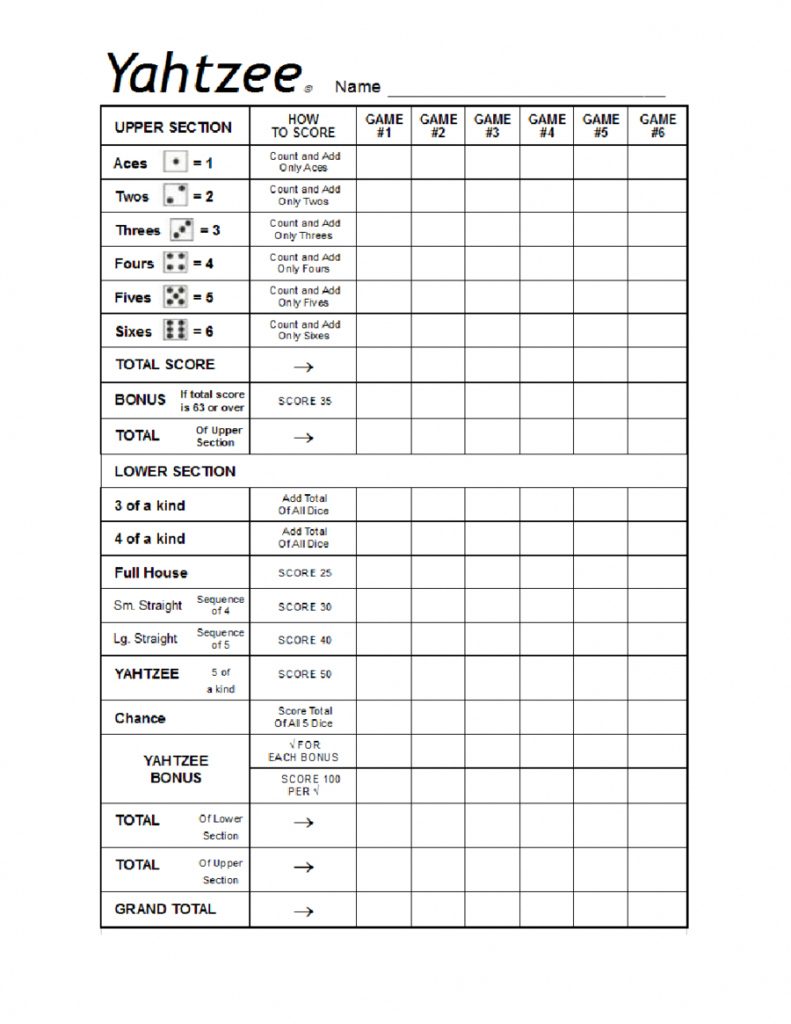 Large Print Yahtzee Scoresheet Big Print | No Dice – The Probability – Free Printable Yahtzee Score Sheets