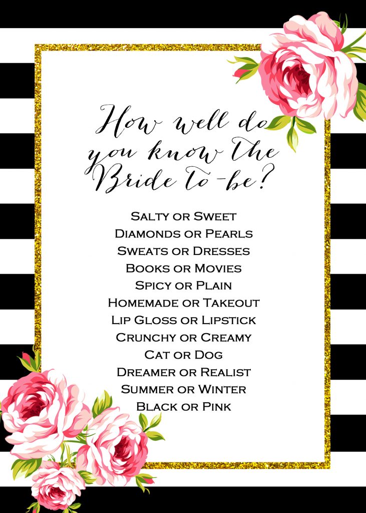 Our website supplies stunning printable data files that you can modify and print out on the inkjet or laser beam printer. How Well Do You Know The Bride Free Printable
