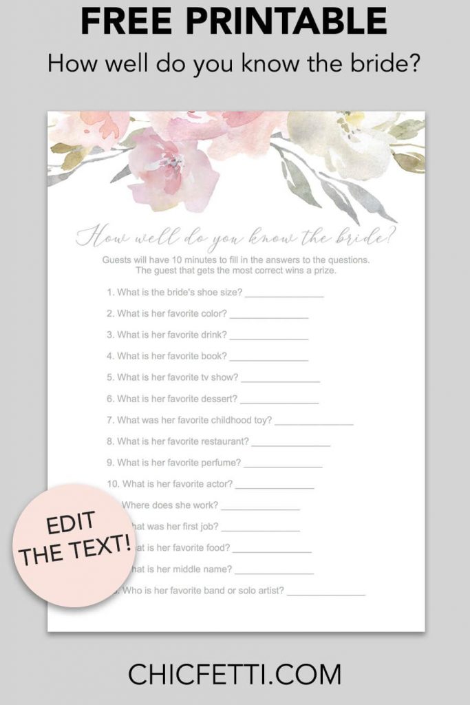 Our site supplies beautiful computer files that you could individualize and print out on your inkjet or laser beam printer. How Well Do You Know The Bride Free Printable