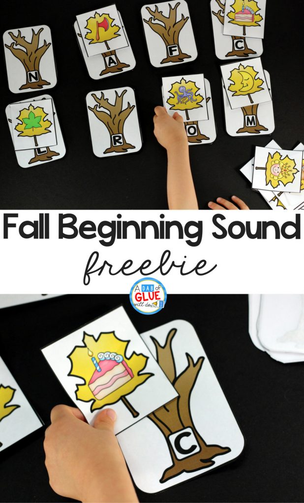 Fall Initial Sound Match-Up Free Printable – A Dab Of Glue Will Do – Literacy Posters Free Printable