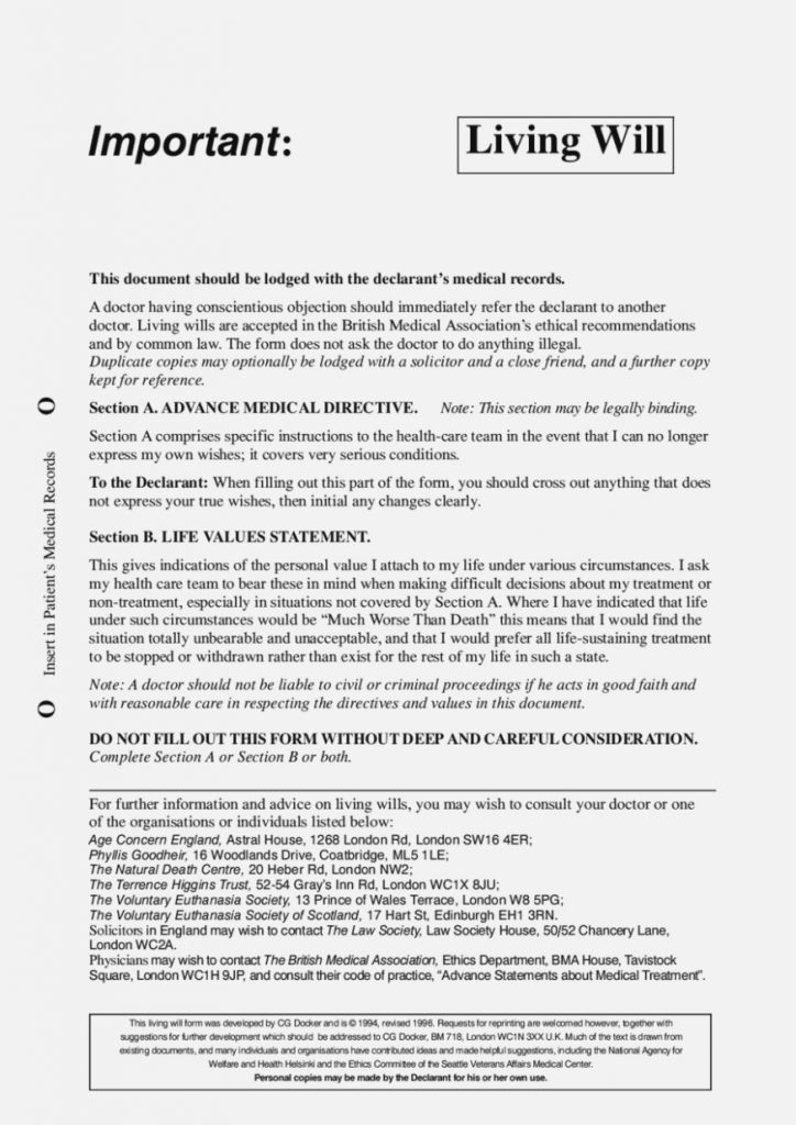Free Printable Advanced Directive Forms – 1.12.kaartenstemp.nl • – Living Will Forms Free Printable