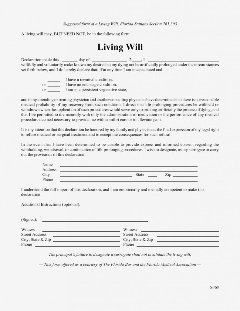 Form Templates Free Living Will Forms To Print Printable Florida – Living Will Forms Free Printable