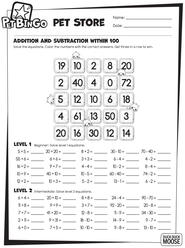 Keep On Learning! Pet Bingo Free Printable Worksheets. | Duck Duck Moose – Math Bingo Free Printable