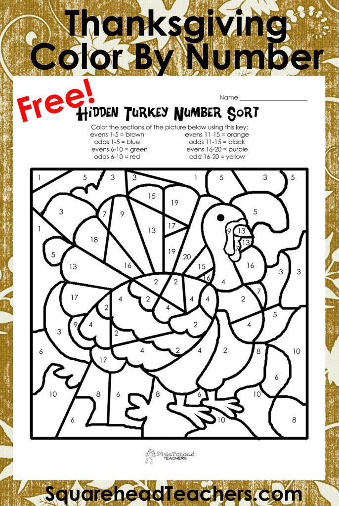 Thanksgiving Colornumber (Odd/evens Sort) | Squarehead Teachers – Math Worksheets Thanksgiving Free Printable