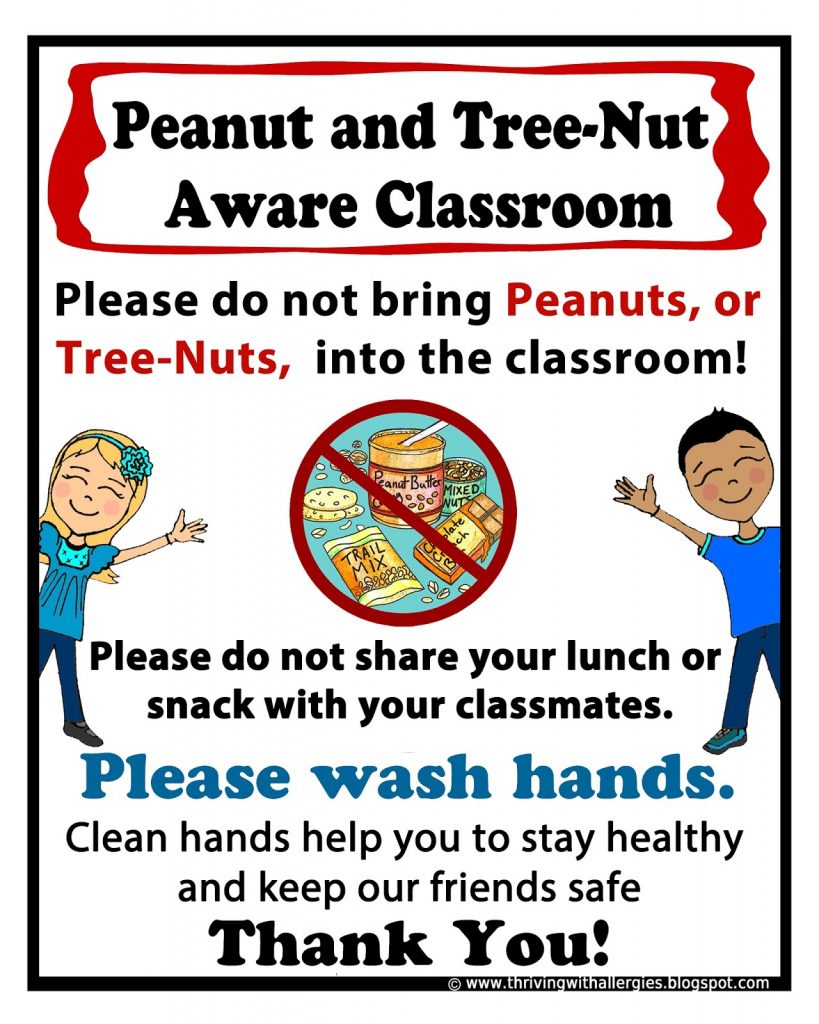 Thriving With Allergies: Food Allergy Alert Daycare/school Handouts – Printable Nut Free Signs