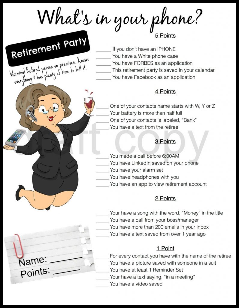 Retirement Party Game-Whats In Your Phone | Retirement | Pinterest – Retirement Party Games Free Printable