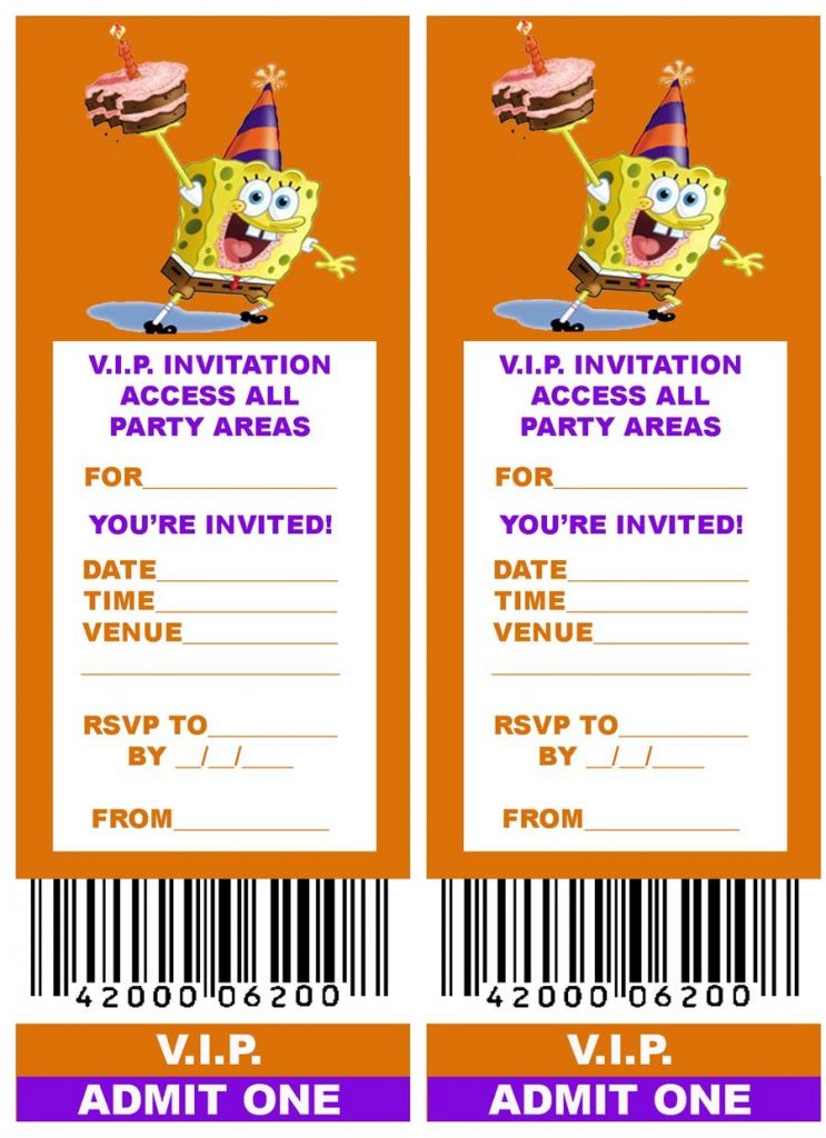 Free, Printable V.i.p. Ticket Style Spongebob Party Invitations – Spongebob Free Printable Invitations