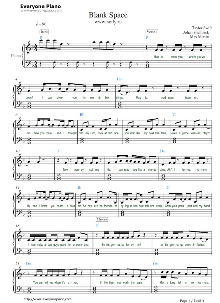 Free Blank Space-Taylor Swift Sheet Music Preview 1 #piano | Music – Taylor Swift Mine Piano Sheet Music Free Printable