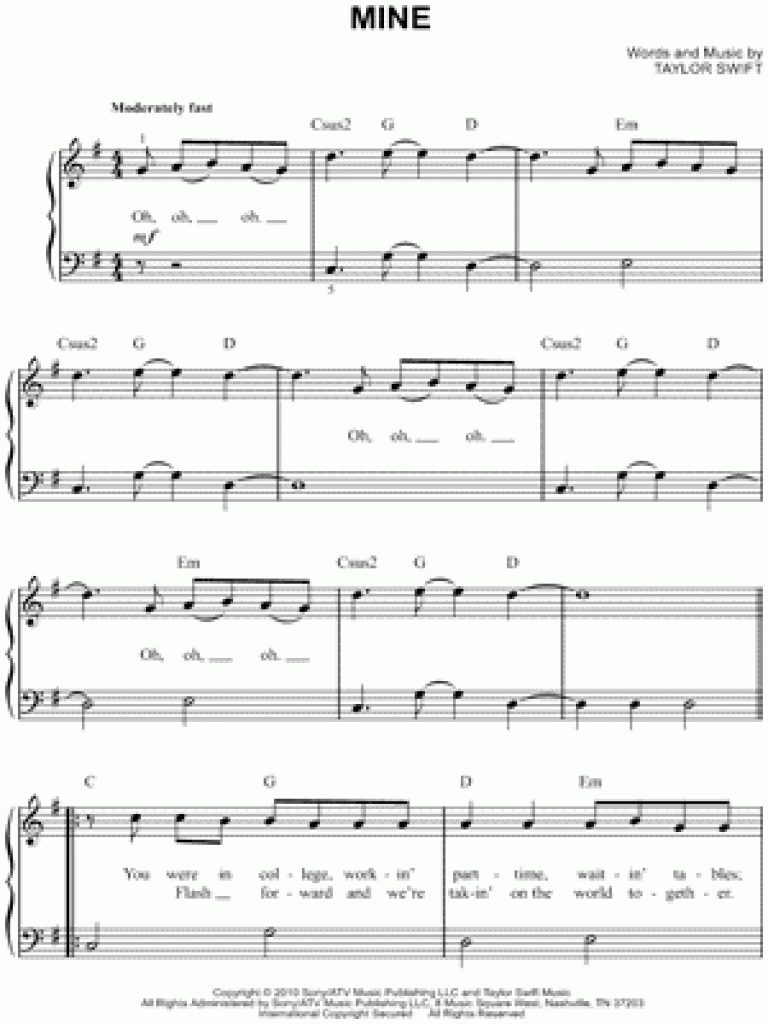 Mine Taylor Swift Piano Sheet Music Download – Taylor Swift Mine Piano Sheet Music Free Printable