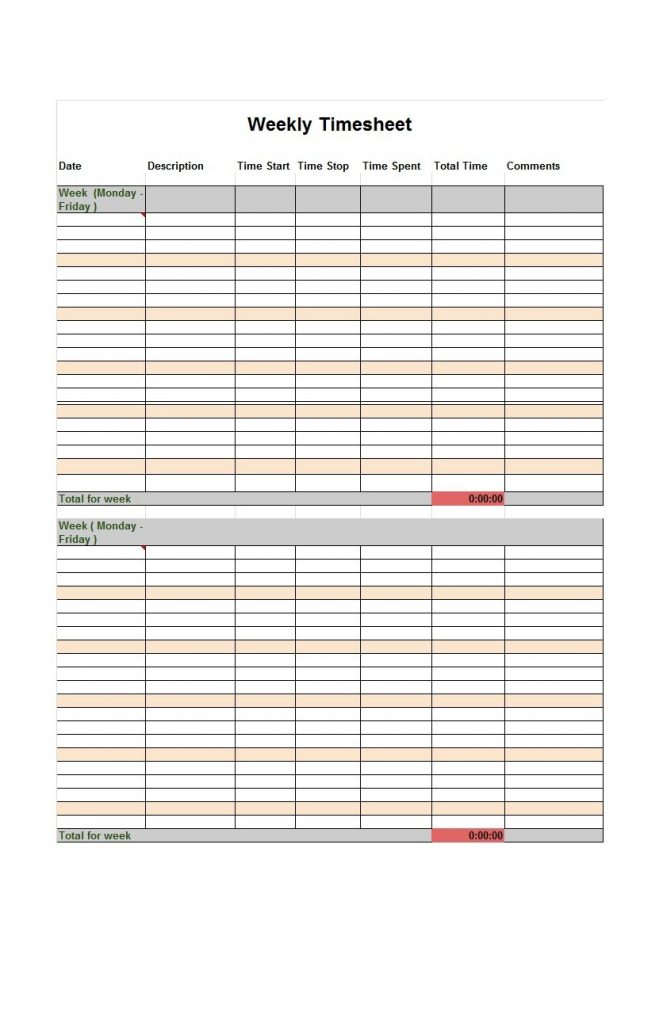 Monthly Timesheet Template For Excel – Time Card Templates Free Printable